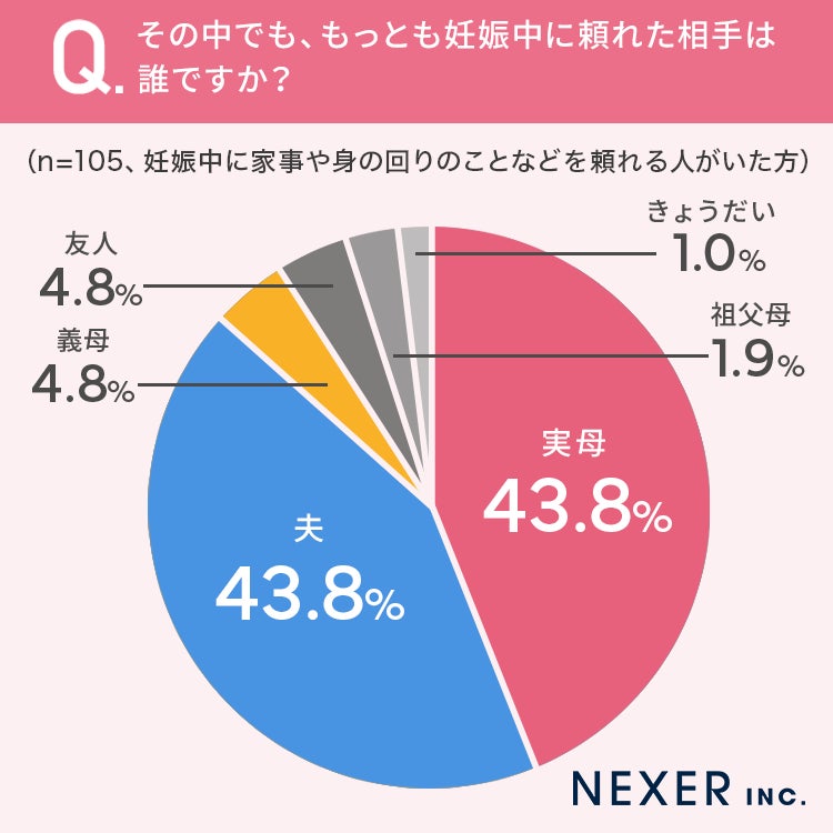 「実母」と「夫」が43.8%と同数で並びました。