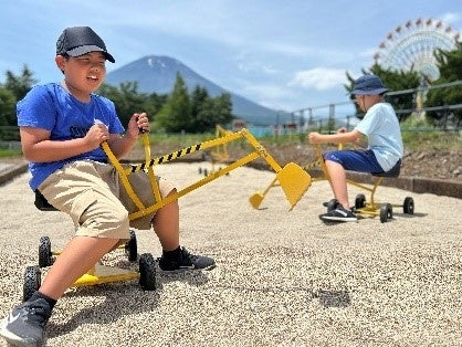 目玉の一つである「MTBサイクリング」は、富士山からの爽やかな風を受けながら、富士山、駿河湾、側火山の火口などを一望できる「絶景周遊コース」と、遊園地から飛び出し、旧ゴルフ場の敷地内までの広大な敷地にある森林の木漏れ日の中を爽快に走ることができる「森林周遊コース」の2つのコースを楽しむことができます。また、「FUJIYAMAバギー」は、冬はそりゲレンデとして使用している山の斜面に、起伏に富んだ全長500メートルの専用コースを設置。電気式バギーに乗り込み、自由なハンドルさばきで、富士山に向かって運転することができ、開放感、爽快感を全身で体感できます。このほか、体重移動で動くアクティビティ「ペンギンライダー」、水陸両用車で池や路面を走る「スプラッシュビークル」、ストライダーに乗ってアップダウンのコースを疾走する「ランバイクパーク」が体験できます。