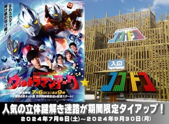 7月6日(土)より放送開始の新番組『ウルトラマンアーク』と、人気アトラクション「立体謎解き迷路ココドコ」が期間限定タイアップ。挑戦者はSKIP(怪獣防災科学調査所)の調査員候補生となり、巨大迷路の謎を解き明かします。施設内には、ウルトラマンアークのフォトスポットも設置され没入感を高めます。たいようのちから、つきのちからの難易度が異なる2コースをめぐり、怪獣を倒すための「力」を見つけだしましょう。