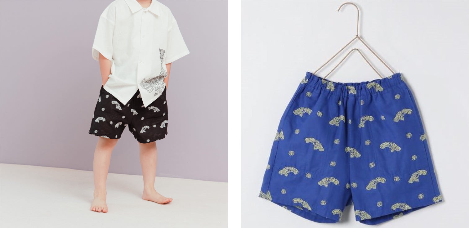 須田さんはことばを話す前からいつもクレヨンと紙を持ち、大好きな生き物の絵を描いていたそうです。須田さんの描くアートは、伸び伸びとした表情と鮮やかな色使いで今にも飛び出してきそうな迫力が特徴。唯一無二のデザインは見る人の心を掴み、元気や力を与えてくれます。今回はそんな鮮やかで迫力のあるアートをあえて線画にし、洋服に落とし込みました。色をなくすことで、子どもたちにそれぞれのカラーを想像してもらい、自分なりの世界を思い描いて欲しいという想いを込めています。