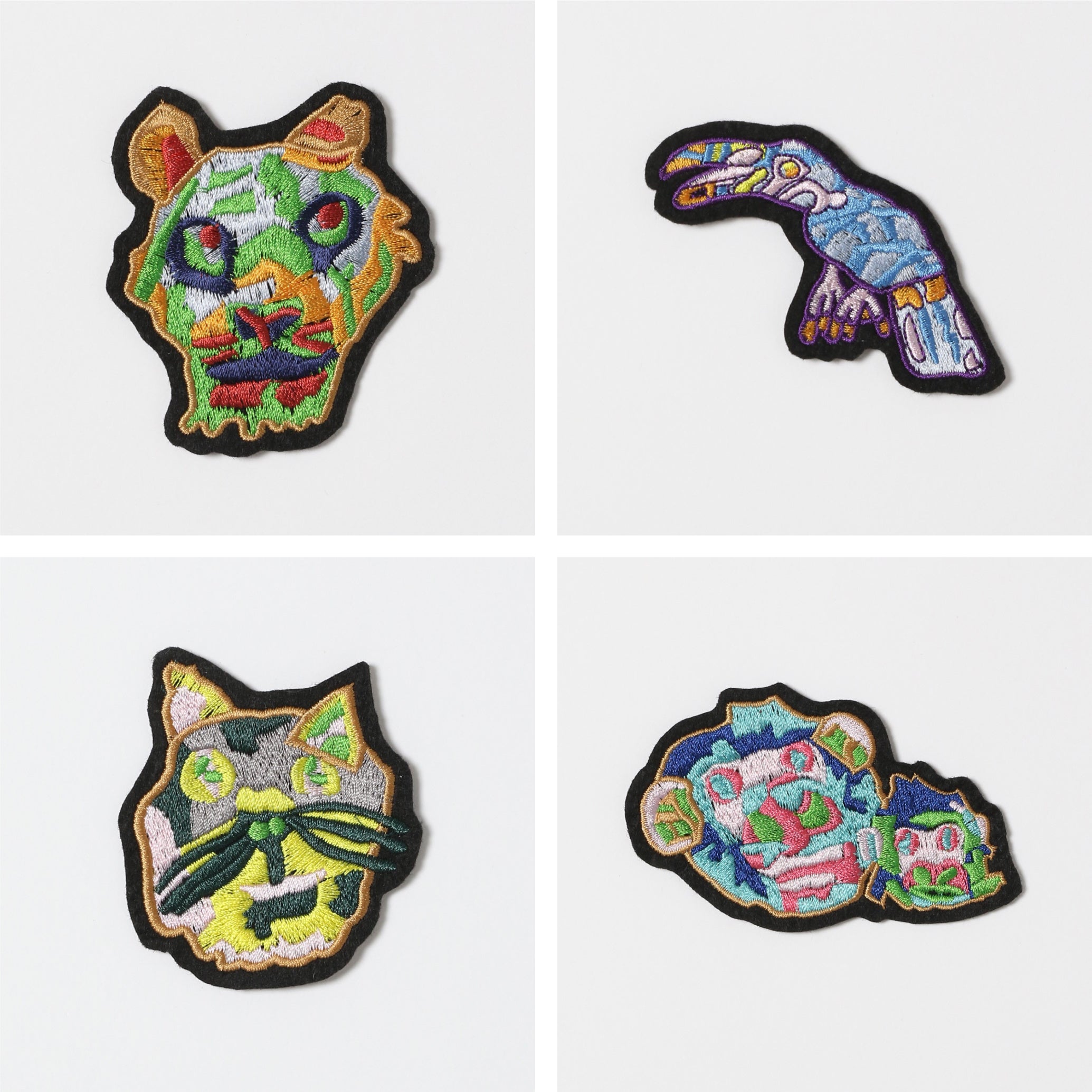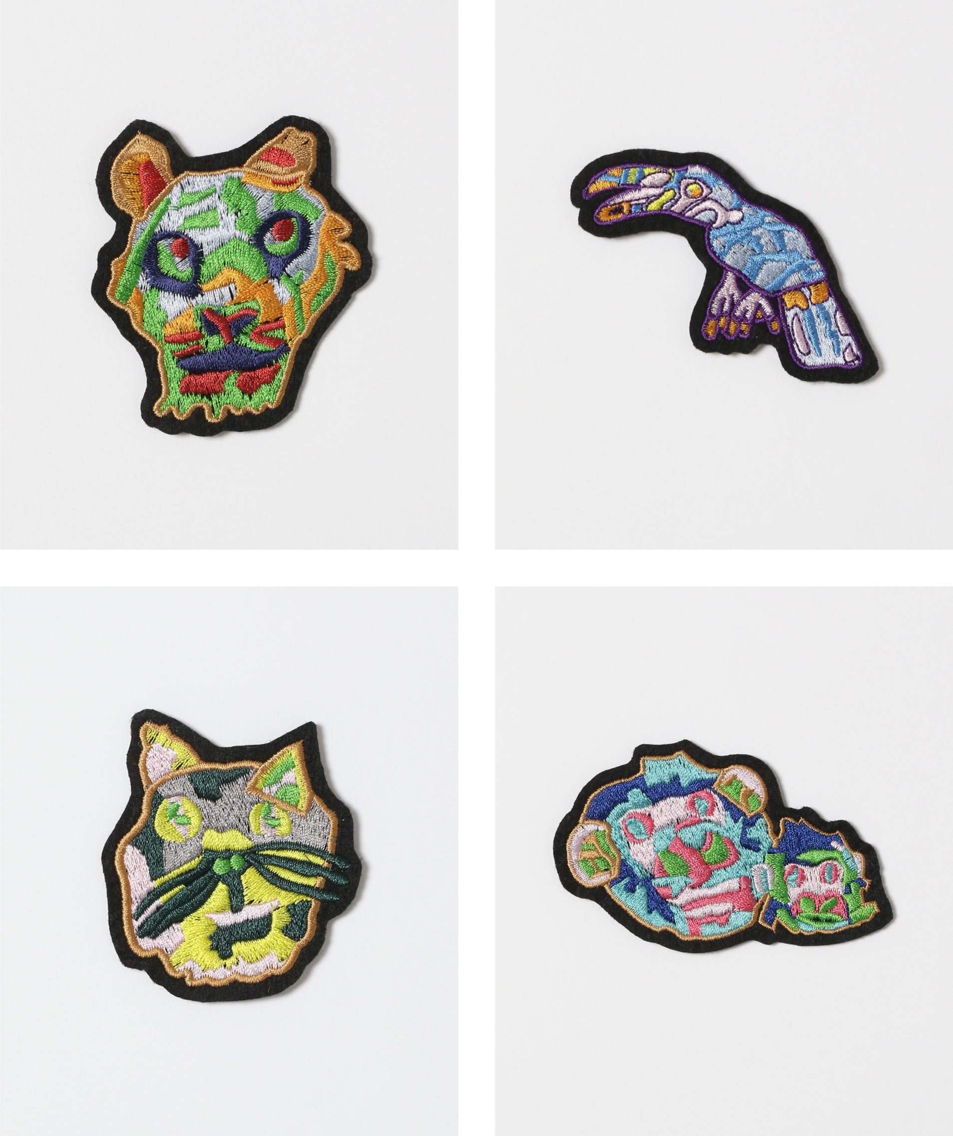 須田さんの繊細且つ、大胆なカラー使いの動物達を、そのまま手のひらサイズのワッペンにしました。