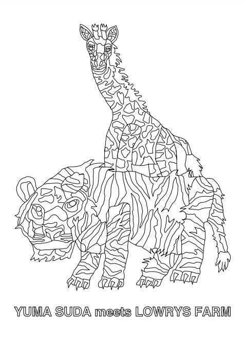 ローリーズファームのキッズ取り扱い店舗にて須田さんのアートを使用したぬり絵シートを配布します。