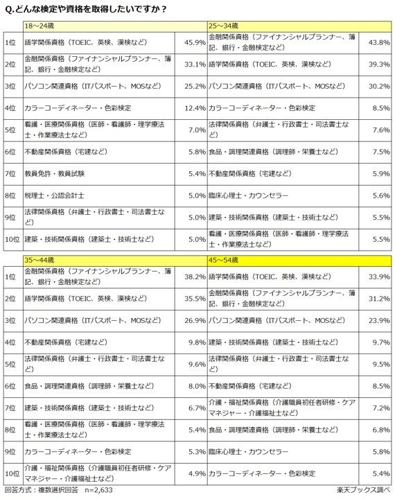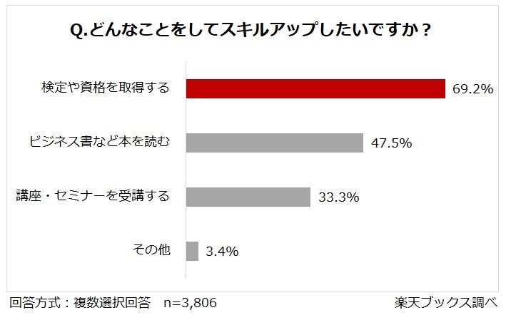 本特集に先立ち、「楽天ブックス」では、18歳から54歳までのユーザーを対象に「スキルアップ・資格取得に関するアンケート」(注3)を実施しました。詳細は、以下をご確認ください。