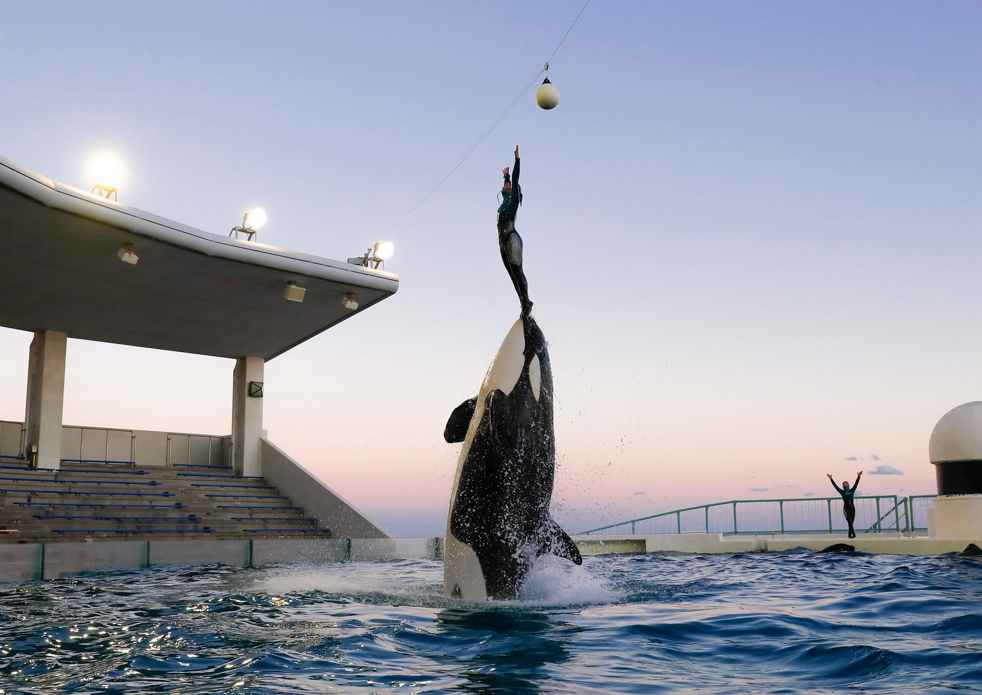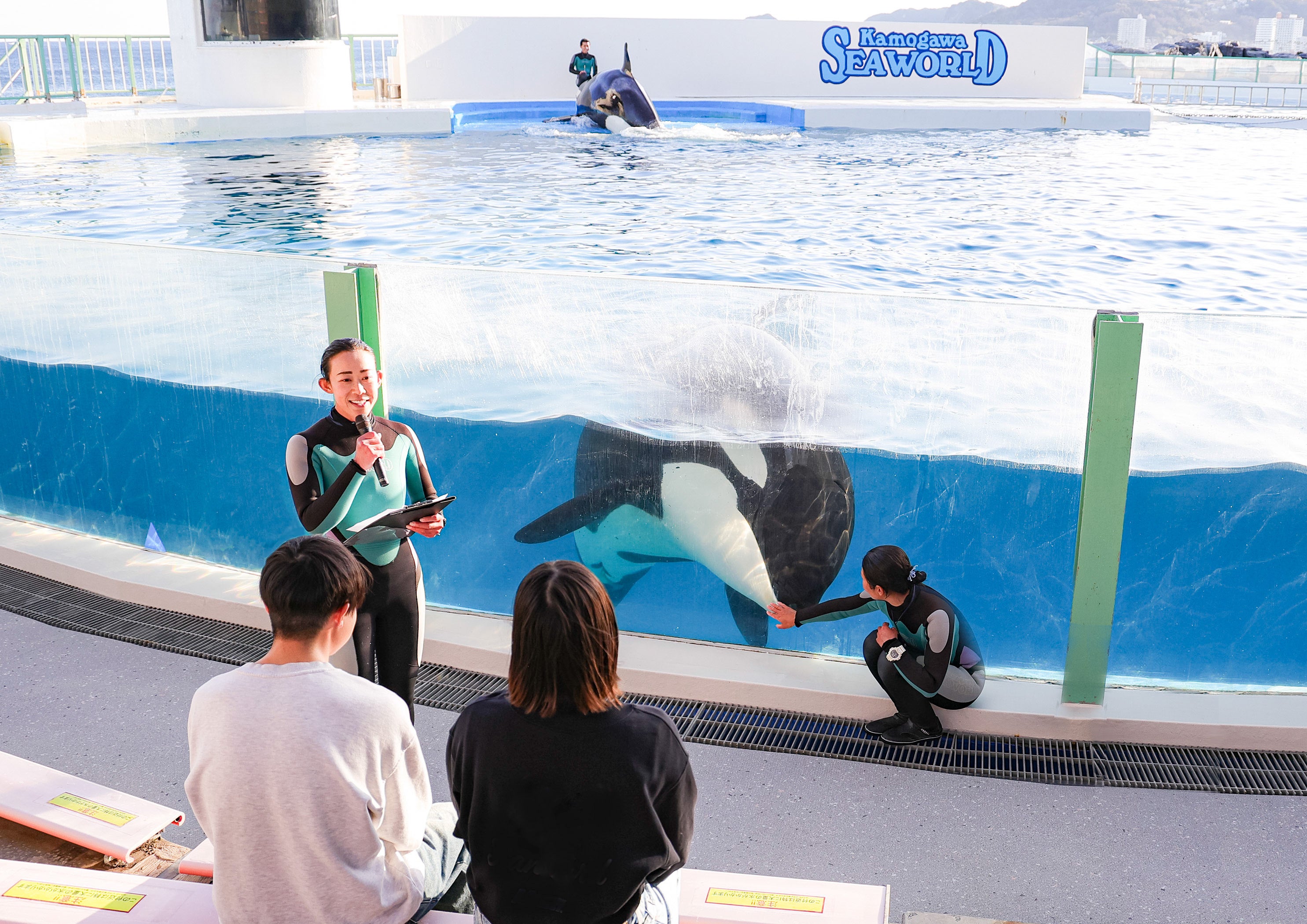 トレーニングの解説を理解してから観覧する夕方の限定シャチパフォーマンス。