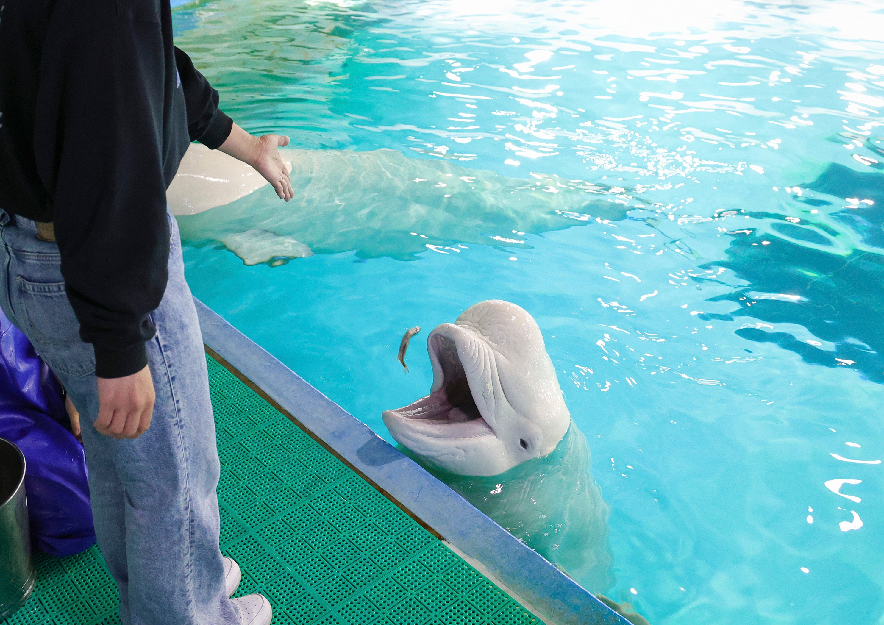 ②ベルーガにタッチ&給餌体験(記念写真付き)