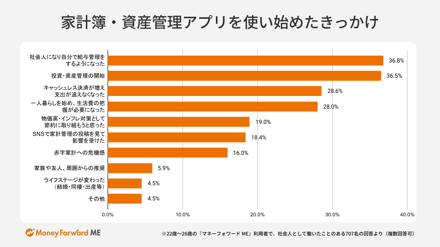 ・家計簿・資産管理アプリ利用のきっかけは、「社会人としての自立」と「投資の開始」