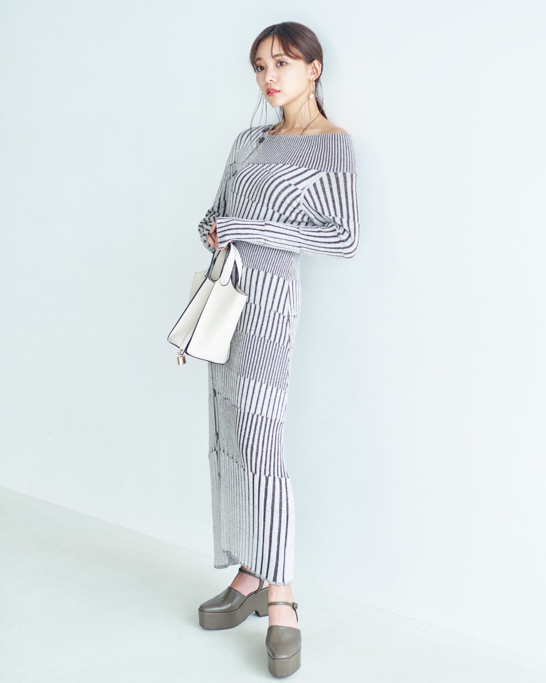 アシンメトリーボタンニットワンピースブランド:SNIDEL