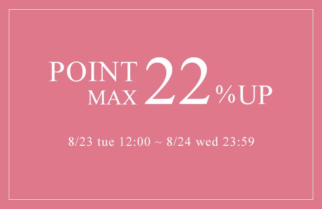 期間中は、会員ランクに関わらず一律でポイント還元率22%となります。※通常ポイント還元率:お買い上げ商品代金の1~5%(会員ランクによって通常ポイント還元率が異なります。)
