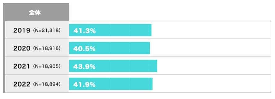 - 全体の41.9%が「独立・開業に興味がある」と回答。独立・開業に興味がある割合は前年比で男女ともに減少【図1、2】