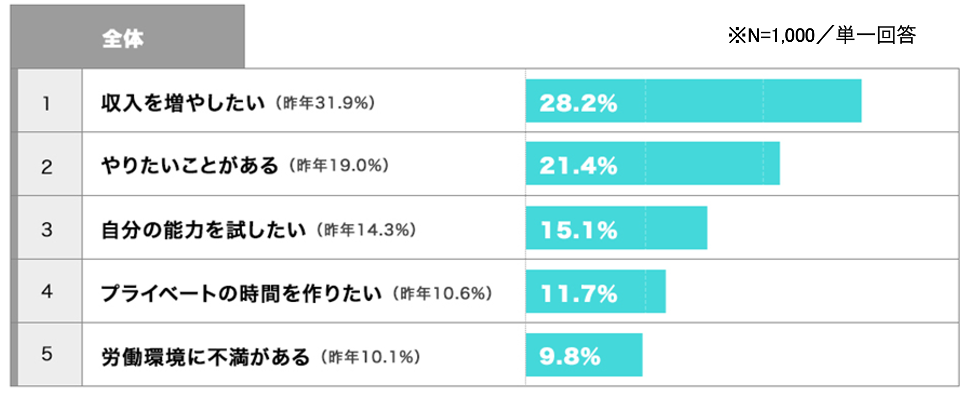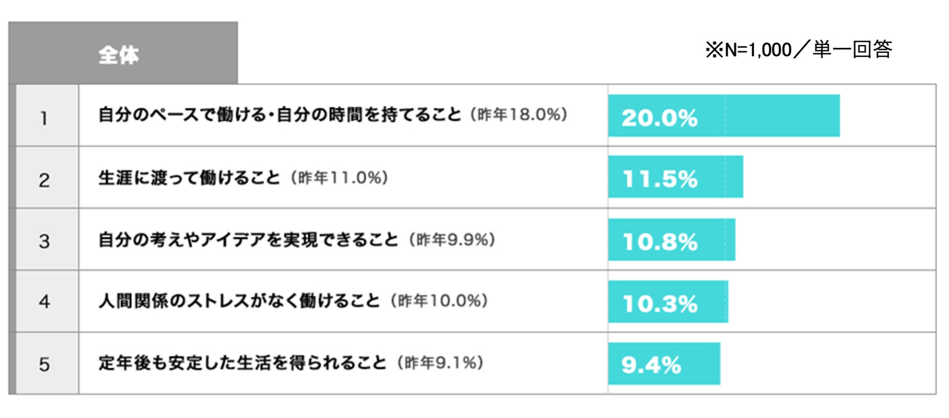 独立・開業に興味がある人は41.9%で前年より減少。興味を持ったきっかけは「収入を増やしたい」、重視したいポイントは「自分のペース・時間」