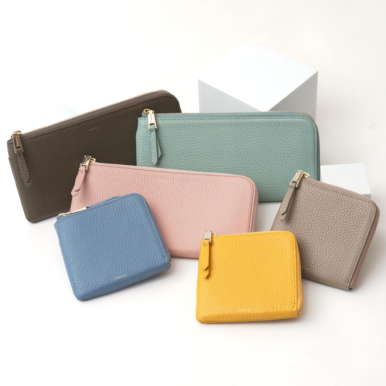柔らかいイタリアンレザーの全18ポケットのロングと全9ポケットのミニ。薄型ですが、カード類をたくさん収納できます。会計がスムーズになる、話題のファスナー無し小銭入れ。長財布はスマホや通帳も入ります。