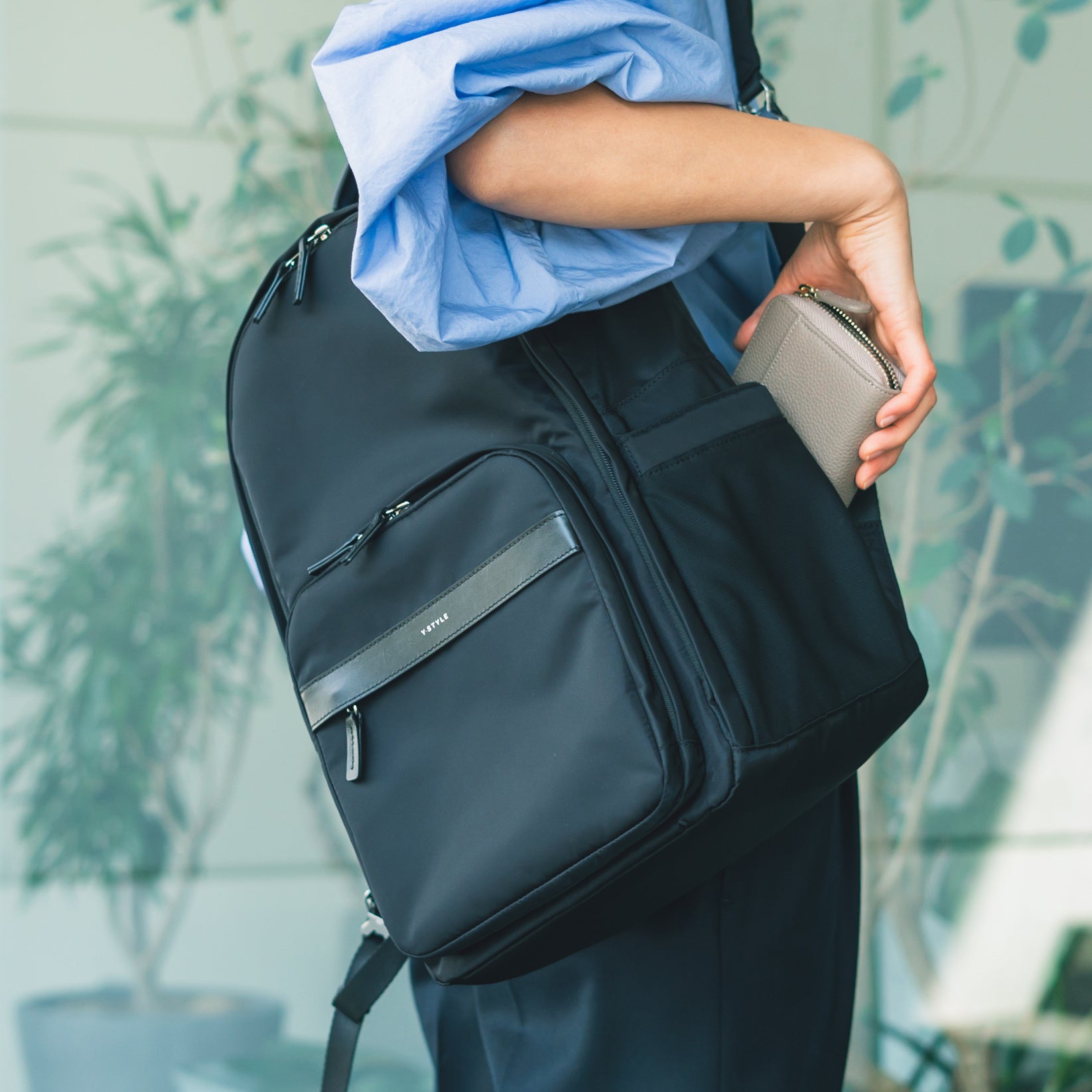 ビジネスやプライベートに加え、旅行やマザーズバッグにも使える"魔法の収納"の工夫が詰まったリュックです。