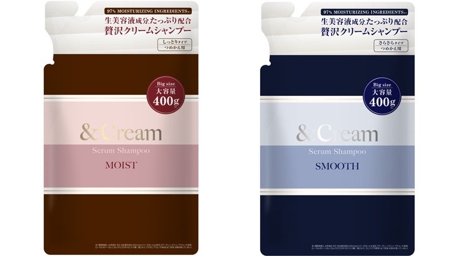 シーラント用リサイクルポリエチレンフィルムとリサイクルPETフィルムの組み合わせで実現、ヴィークレア社の新製品「&Cream(アンドクリーム) セラムシャンプー 詰め替え」2種に採用