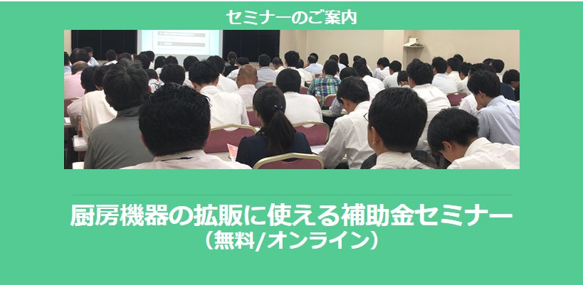 「厨房機器の拡販に使える補助金セミナー(無料/オンライン)」の配信を開始します。