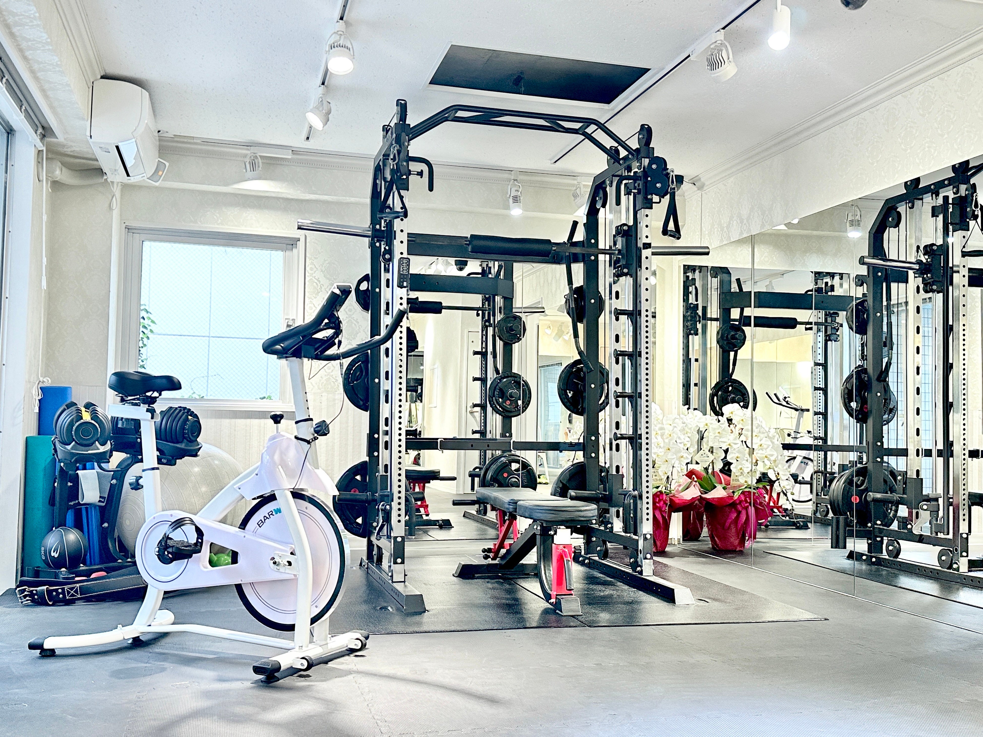 昨年11月にリニューアルオープンし旧店舗と比べ広くなったトレーニングスペースと、ハワイのホテルを連想させる白を基調とした店内、そして窓から差し込む太陽光が自慢のパーソナルジムです。
