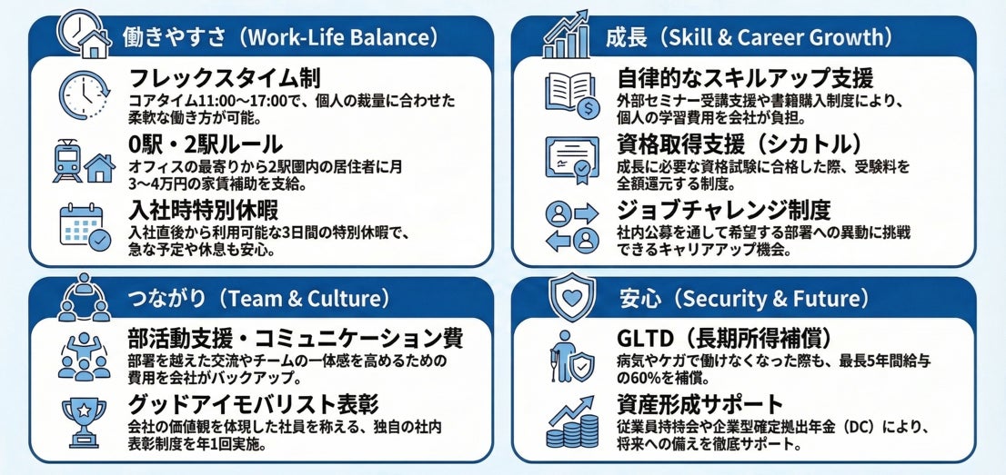 当社グループは今後も、福利厚生を含む人材戦略を強化し、誰もが安心して活躍できる環境づくりを通じて、企業価値の向上と持続的な成長を目指してまいります。