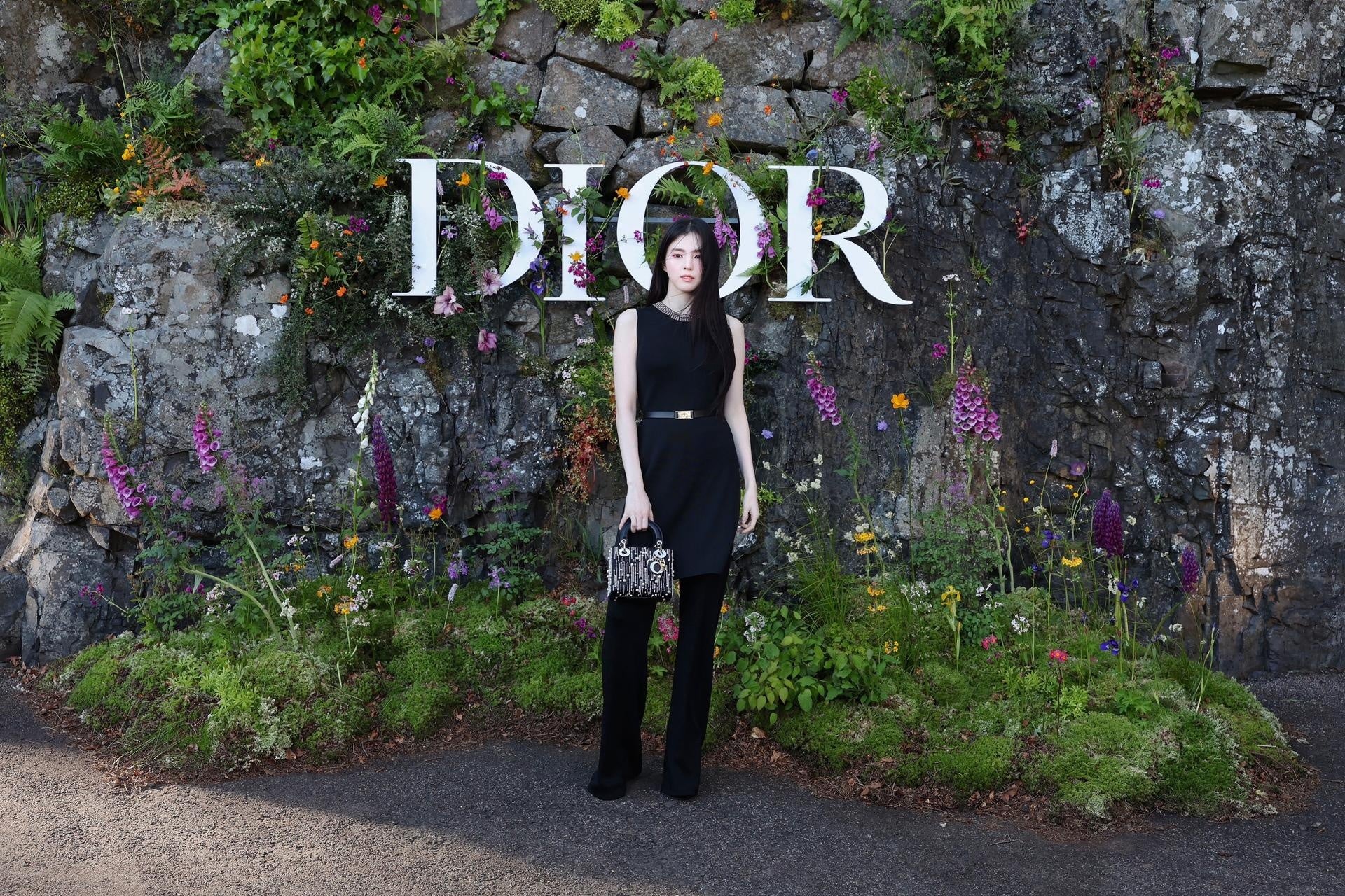 ハン・ソヒは2024-2025年秋冬 コレクションのブラックのウール&シルクのトップスとパンツに、ディオールのバッグ、ベルト、シューズも着用しました。