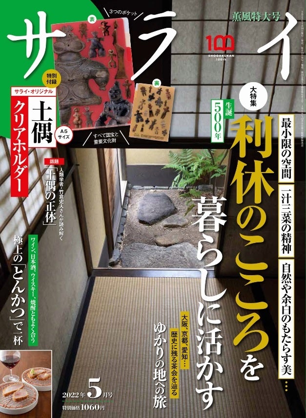 4月7日発売の『サライ』5月号の特別付録は、サライ・オリジナル「土偶クリアホルダー」。