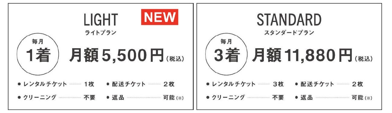 ■月額 5,500円(税込)で1着レンタルできる「ライトプラン」の新登場