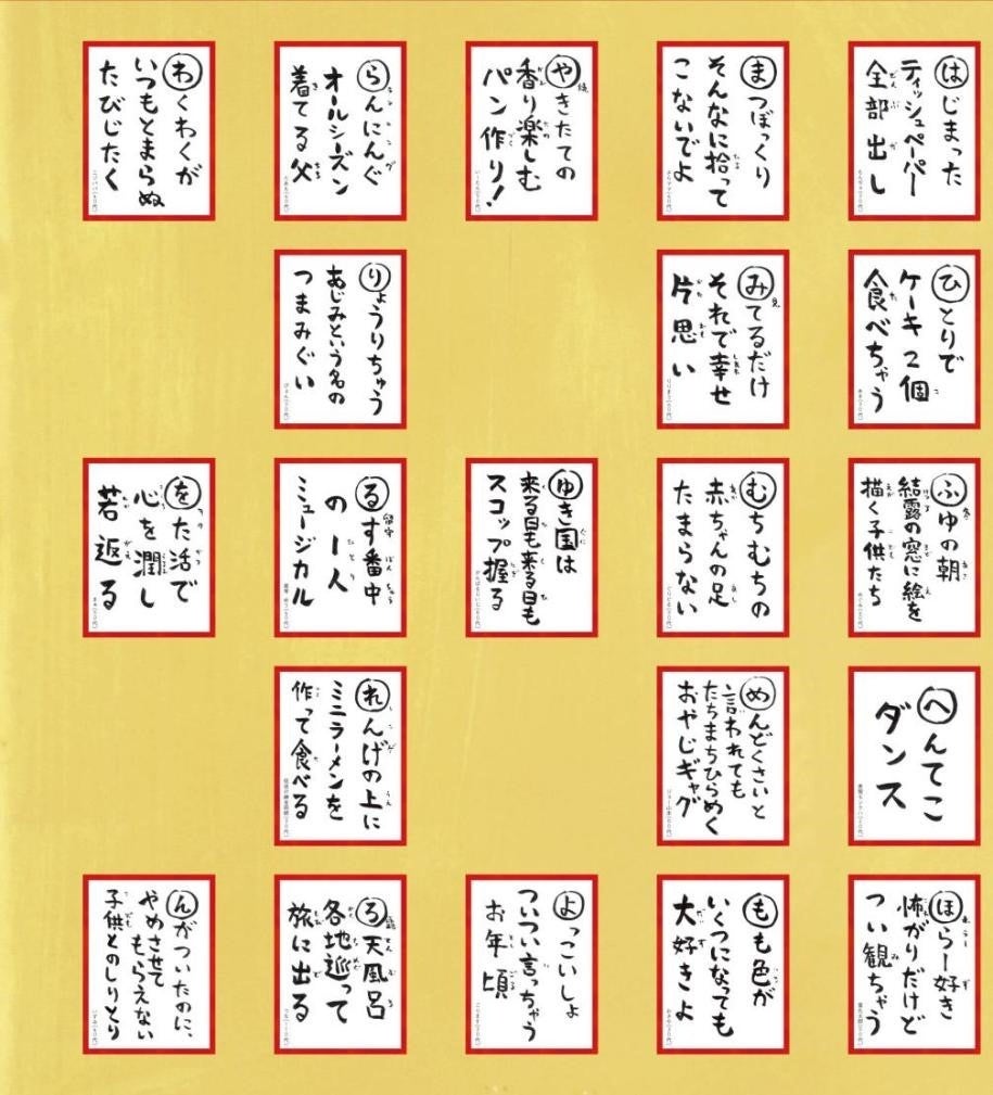 今回のキャンペーンでは、「あ」を除く45文字(「い」から「ん」まで)の読み札を募集し、全国より31,678作品もの応募をいただきました。厳正なる審査の結果、入選作品として45点を選出。「あ」の「ああ、やめられない、とまらない♪」とともに、「やめとまかるた」の読み札として採用いたしました。