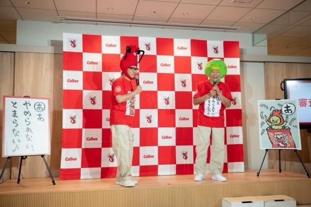 カルビー株式会社(本社:東京都千代田区、代表取締役社長兼CEO:江原 信、以下カルビー)は、「わたしのやめとま2025キャンペーン」(第1弾)にて、みなさんの「やめられない、とまらない♪」ことを募集しました。2025年7月29日(火)に開催した「やめとまかるた 最優秀作品決定&のりしお味発売」記者発表会では、最優秀候補5作品の中から、審査員長を務めるお笑いコンビ・ずんの飯尾 和樹さんとやすさんが最優秀作品1点を選びました。最優秀作品を含む入選45作品をもとに、イラストレーター・かるた作家の豊永 盛人さんがイラストを描き下ろし、オリジナルの「やめとまかるた」を制作します。
