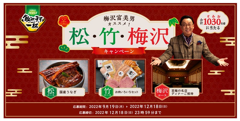 ③ またまた梅沢富美男さんにちなみ、当選人数は合計「1,030(とみお)」名様と大盤振る舞い!