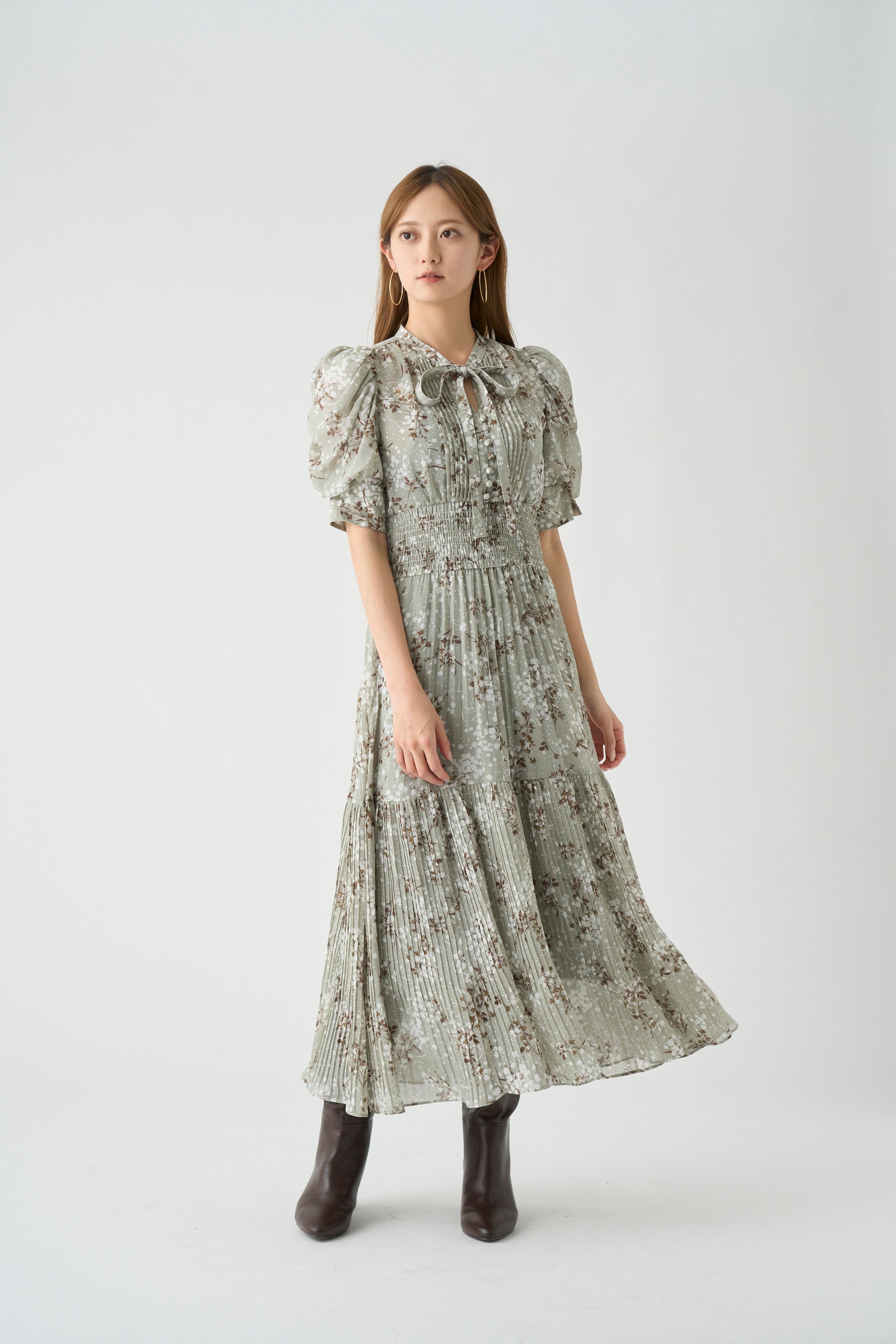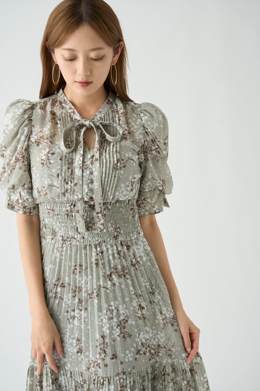 全体に細かく入ったプリーツが華奢な女性らさを演出。