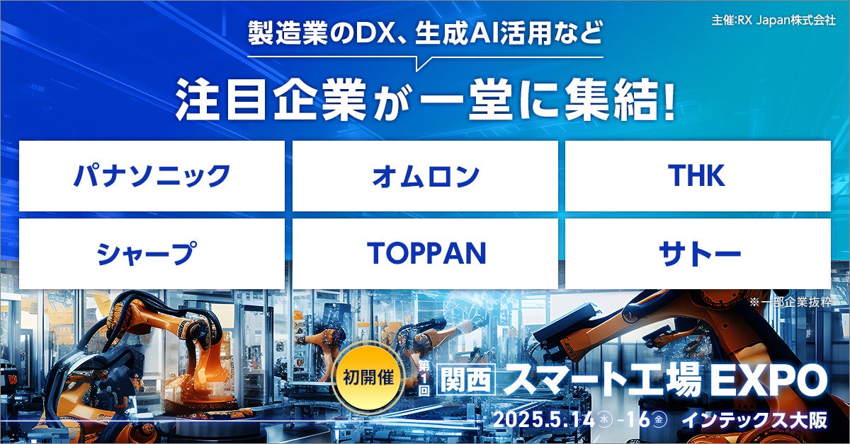 RX Japan株式会社(本社:東京都中央区、社長:田中岳志)は、2025年5月14日(水)~16日(金)にインテックス大阪にて「第1回 【関西】スマート工場 EXPO」を初開催いたします。
