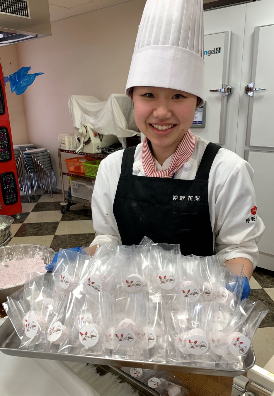 毎年恒例となっている本イベントですが、今年度担当したパティシエ学科2年生の沖野花梨さんは