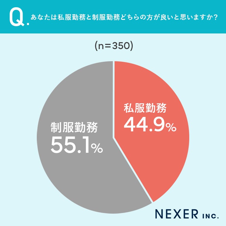 55.1%の方が、私服勤務よりも「制服勤務の方が良い」と回答しています。