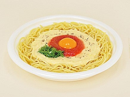 【内容】つるっとした食感で弾力のある「生パスタ」を使用しました。クリームとチーズのバランスの良いカルボナーラソースに、辛味・風味・粒感にこだわった明太ソースと卵黄ソースをあわせた、明太子のカルボナーラです。お店の味を再現すべく、大葉の風味をアクセントに効かせています。トッピングのネギと海苔も相性抜群で、最後まで美味しくお召し上がりいただける仕立てにしました。