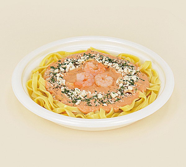 鎌倉パスタの人気商品「明太子カルボナーラ大葉の香り」、「ぷりぷり海老とベーコンのトマトクリーム」の味わいをベースに開発いたしました。鎌倉パスタ自慢の「生パスタ」を本格的に再現すべく、生パスタの食感にもこだわりました。