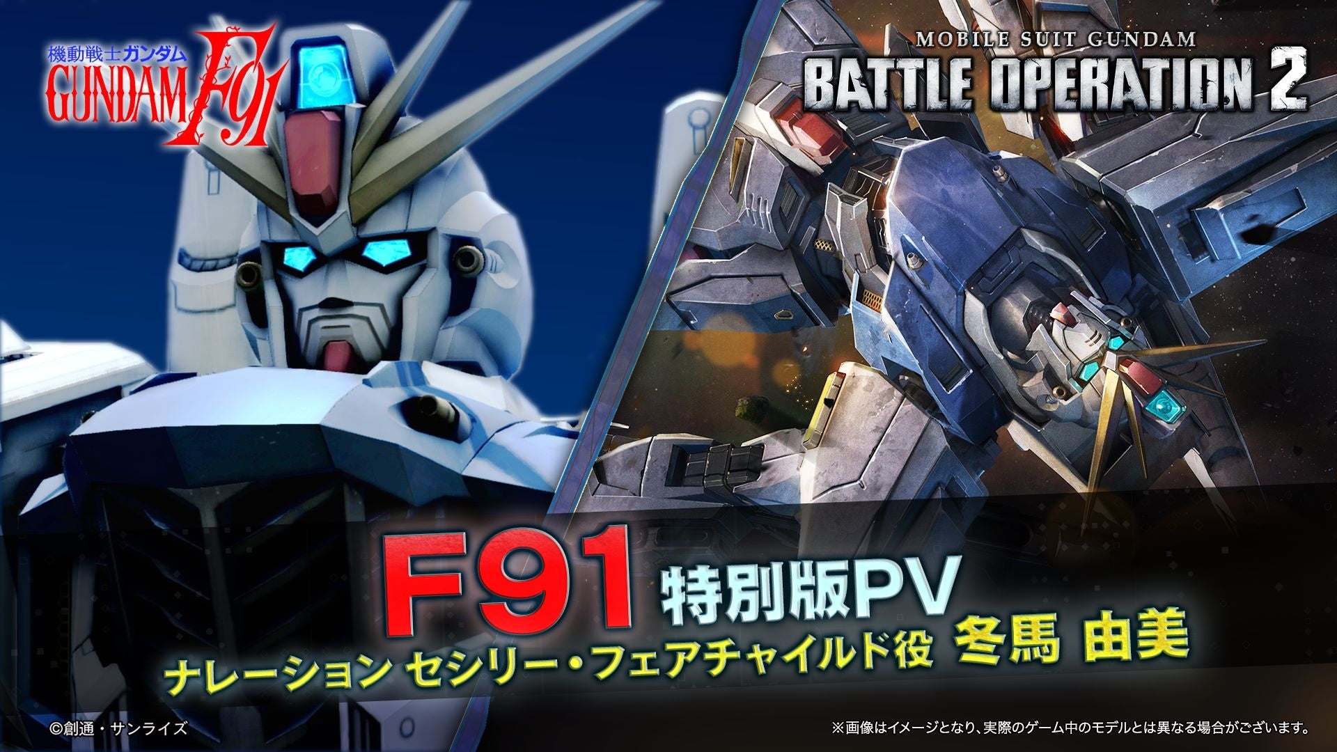 『機動戦士ガンダム バトルオペレーション2』テレビCMにおいて、新規追加機体「F91」が登場する