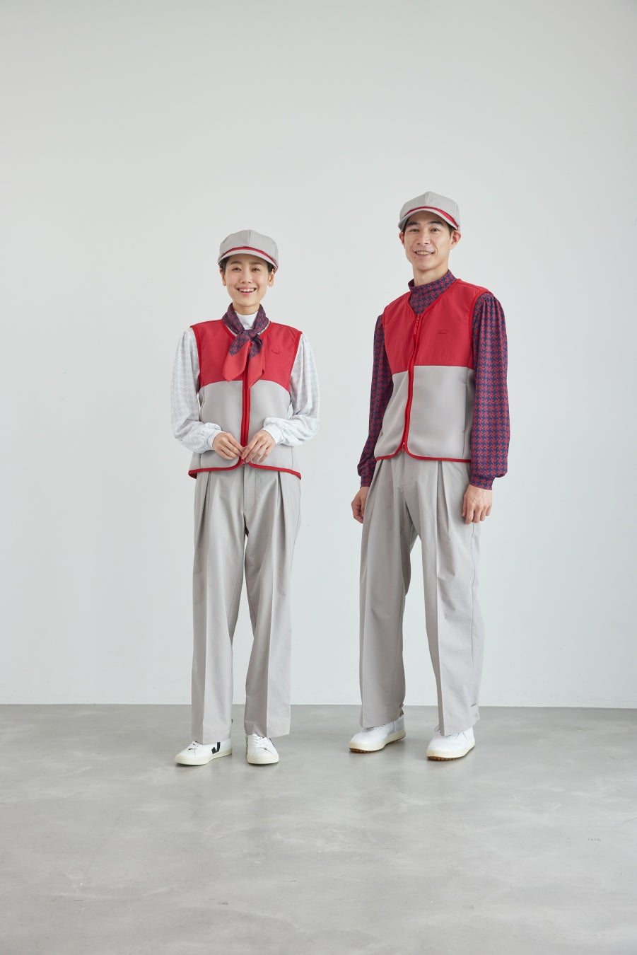 新制服は、富士急ハイランドの魅力をお客様に直接お伝えするスタッフたちに、この制服を通じて「笑顔溢れるワクワクする体験」をしてもらい、遊園地全体のパフォーマンスやホスピタリティの向上に繋げたいという願いを込めて、来園されたお客様を『絶叫と興奮に満ちた冒険』へお連れする“案内人”をイメージしています。従業員のテンションやモチベーション、快適性がアガり、自然に笑顔(Smile)と自信(Confidence)が溢れ出るようなデザインかつ、富士急ハイランドのロゴマークと同じ「富士急レッド」をポイントカラーに採用するなど、“富士急らしさ”にもこだわっています。
