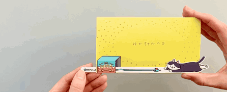 【NEW】引っぱると読める! 猫が箱の中にすべり込むメッセージカード