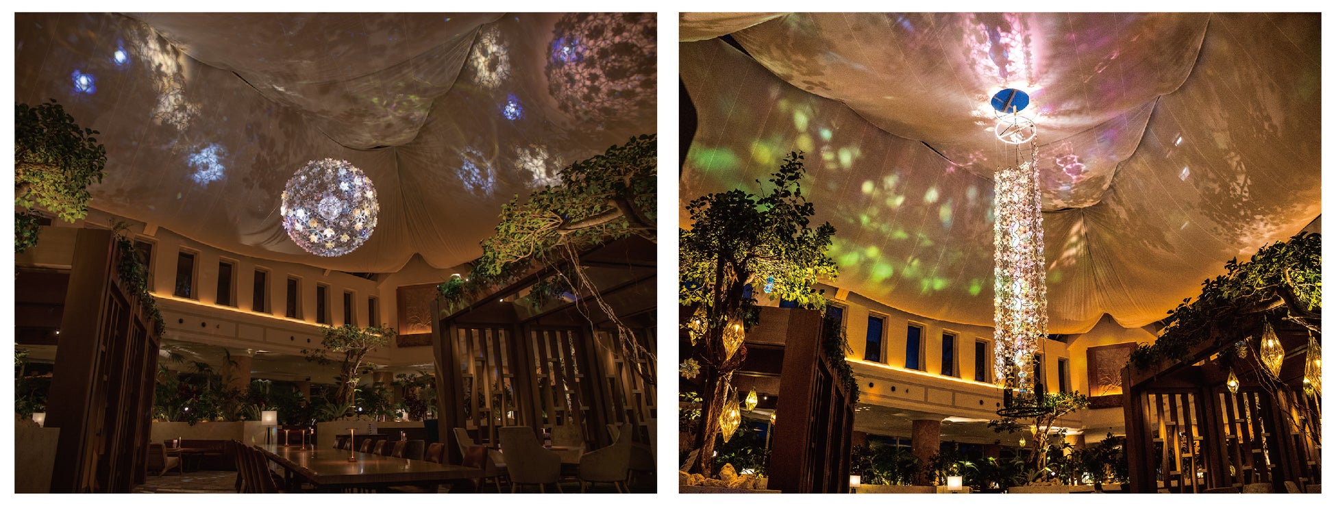 本作品は、やんばるの大自然が持つ「光」と「水」の二つのエレメントを中心に、生命の営みと美を五感で感じながら鑑賞いただけます。また、ロビーラウンジ内では、やんばるに焦点を当てたオキナワンカクテルが楽しめる他、当ホテルのコンセプトを体現する環境音楽「AMBIENTAL」が楽しめます。アート作品とともにこの場でしか体験できない贅沢な時間をお過ごしいただけます。