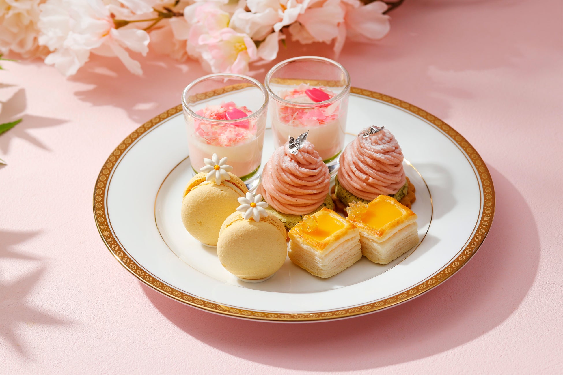 麗らかな日本の春をテーマに、彩り綺麗なティーフーズが勢ぞろいした春限定のアフタヌーンティーです。桜咲く情景をグラスで表現した「春色パンナコッタ」や和菓子を思わせる「桜と抹茶のモンブラン」、旬の柑橘類を使用したマカロンやパイのほか、フルーティーな味わいのリキュールを使用した真っ赤なチェリーがアクセントのフランス伝統菓子「ケークプランタジェネット」など、パティシエこだわりのスイーツが満開に咲き誇る花々のようにティースタンドを彩ります。セイボリーには、芽吹きの春をイメージした「プティポワフランセ風サラダ」や「春のキャベツとたまごの全粒粉サンド」、「桜エビとあおさのキッシュ」と、旬の素材を使用したメニューをご用意しました。人気のスコーンは抹茶とプレーンの2種類をたっぷりのクロテッドクリームと小倉あんでお召し上がりいただけます。日本の美しい“春”を愛でるように楽しむ口福なティータイムを、美味しい紅茶ととともにごゆっくりとお楽しみ下さい。