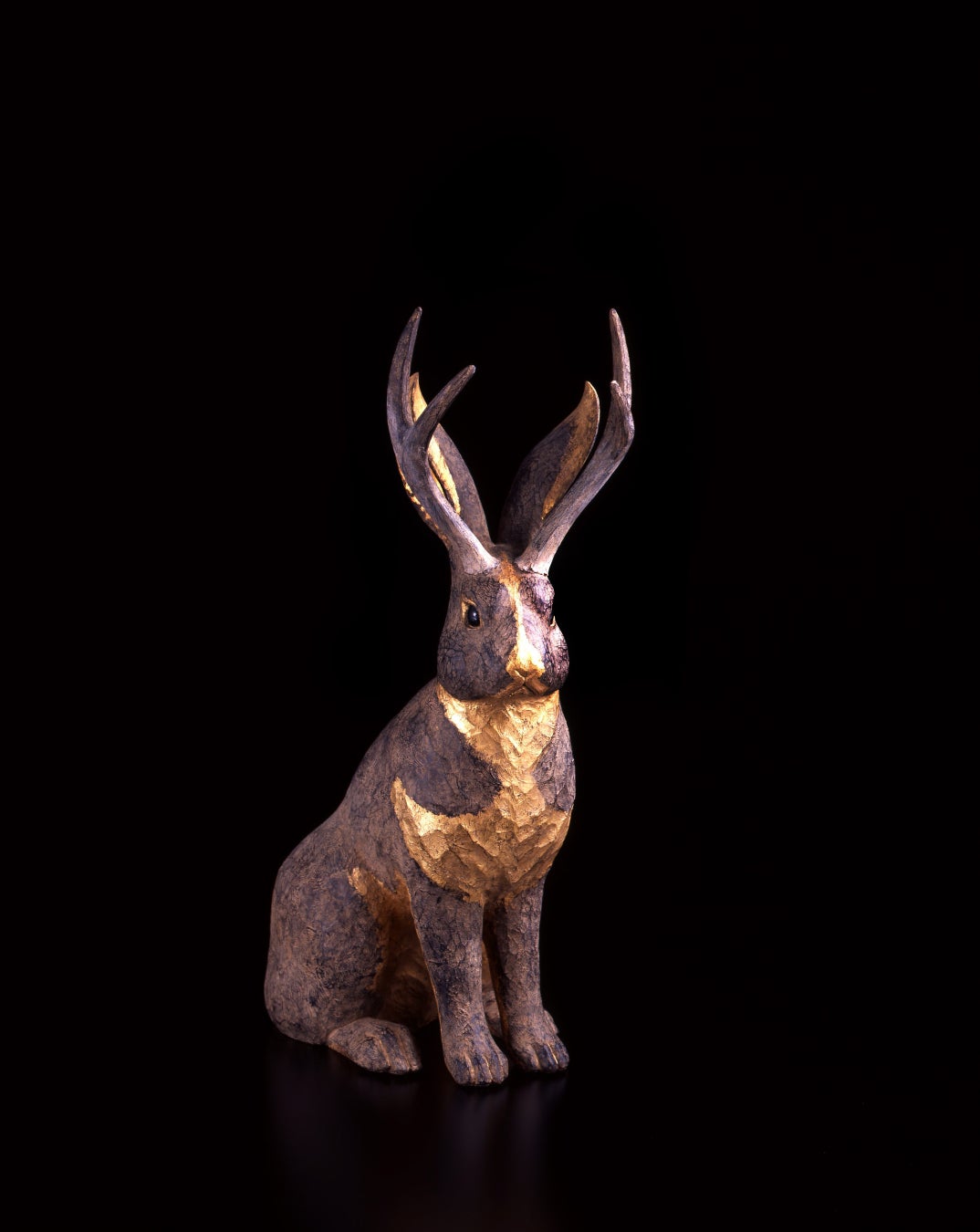 彫刻家・大森暁生は、主に木と金属を素材に、実在するものから架空のものまで命あるものをモチーフに制作しています。その彫刻は、霊気を帯びているかのように神秘的で、今にも動き出しそうなほどリアルです。本展では、大学の卒業制作を含めた初期作品から始まり、熊本市動物愛護センターを取材し制作した意欲作、大森暁生の代表作の一つである家具とモチーフを合わせた木彫作品や、幻想的な「in the frame」シリーズなど、作家の世界観を代表する作品約50点を展示、そこに作家が今までに紡ぎだしてきた言葉を作品と合わせて展覧いたします。