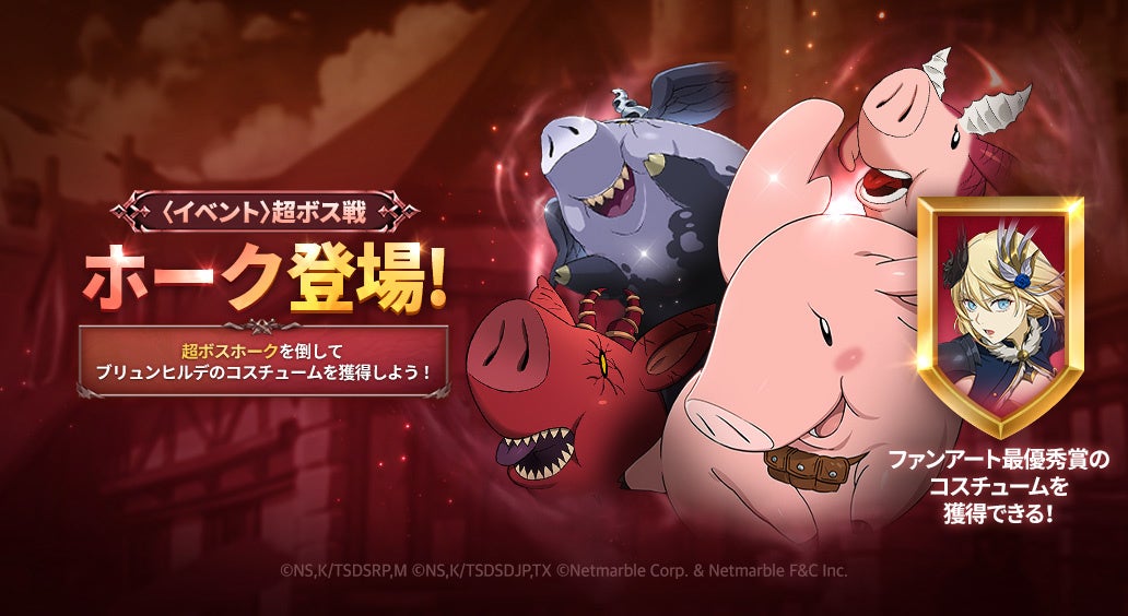 ホークが超ボスとして登場する「超ボス戦ホーク」を開催いたします。超ボス戦交換所では、エスカノールと王太子 シグルドの限定コスチュームや、ラグナロクファンアートコスチュームに加え、超覚醒コインやSSR確定チケット、装備刻印石などの豪華報酬を獲得できます。