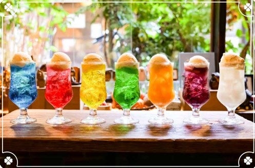 本の街、東京・神保町で60年以上愛され続ける「さぼうる」。トーテムポールやダイヤル式の赤い電話、壁いっぱいの落書きや民芸品がひしめき合う、混沌とした世界観が魅力のお店です。プレゼンターの難波里奈さんが「さぼうる」を舞台に手掛けた絵本『なないろのクリームソーダ』に描かれている名物のクリームソーダが登場。味は定番のメロン・いちご・ブルーハワイ・レモンのほか、オレンジ・ぶどう・カルピスをご用意しました。