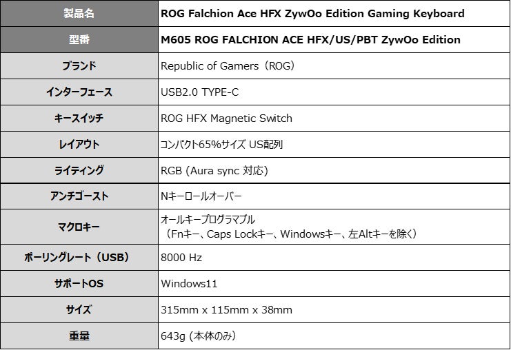 Republic of Gamers、プロゲーマーZywOoとのコラボゲーミングキーボード「ROG Falchion Ace HFX ZywOo Edition Gaming Keyboard」を発表
