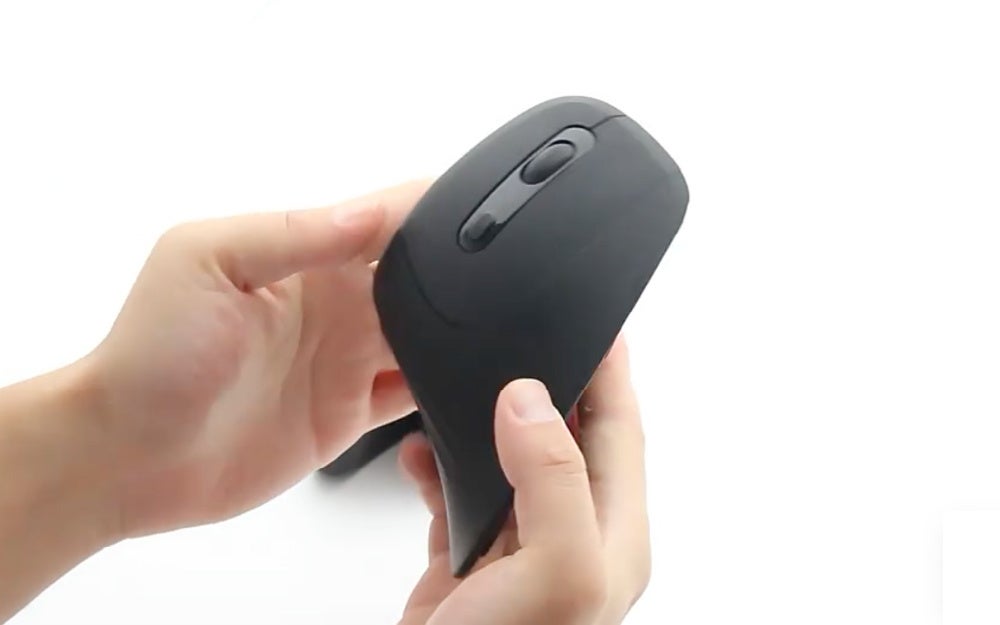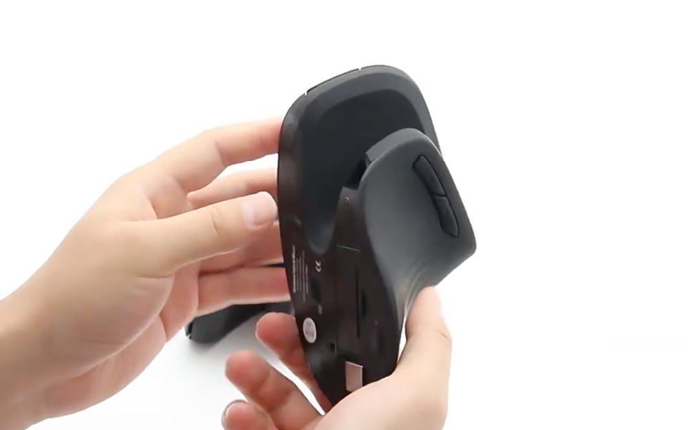 ●人間工学に基づいた形状の縦型(垂直型)マウス、親指から手を自然な形で沿わせて操作ができる