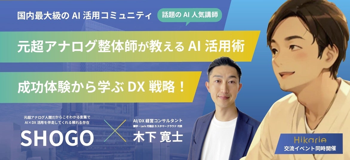 元アナログ整体師としての経験を持つSHOGO氏が、AI×DXを活用したデジタルトランスフォーメーション(DX)の成功事例と実践方法を伝授します。