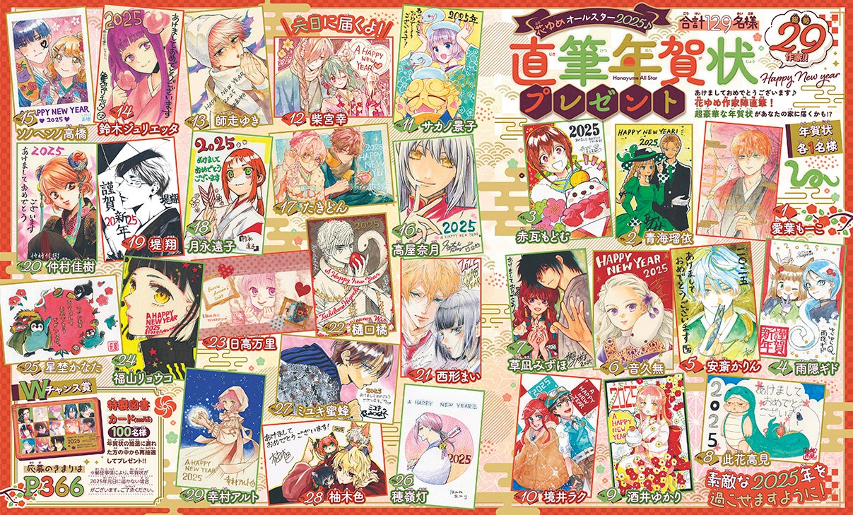 今年も総勢29名の豪華作家陣が登場!「花ゆめオールスター2025♪直筆年賀状プレゼント」