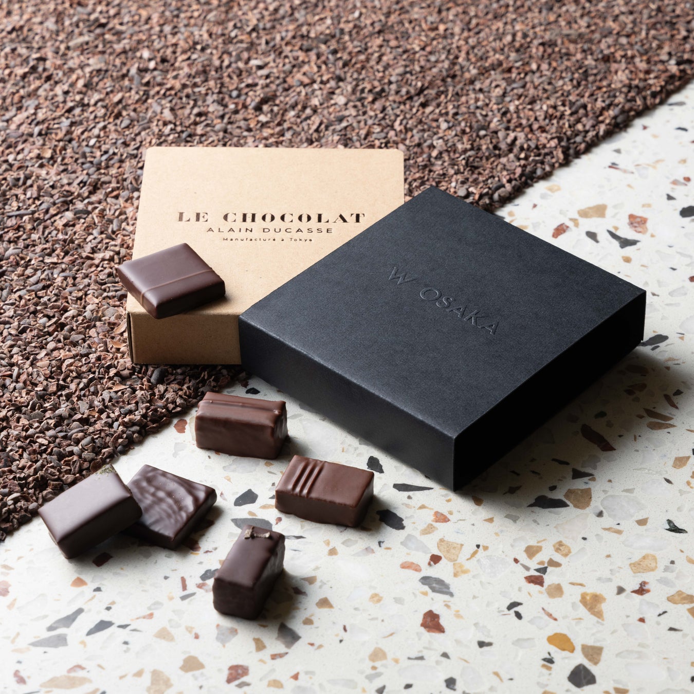 ル・ショコラ・アラン・デュカスがW大阪のためだけに開発した、モヒートやジンジャーエスプレッソを使用した2種類のオリジナルフレバーーを含む、香り豊かな6種類のボンボン・ショコラ