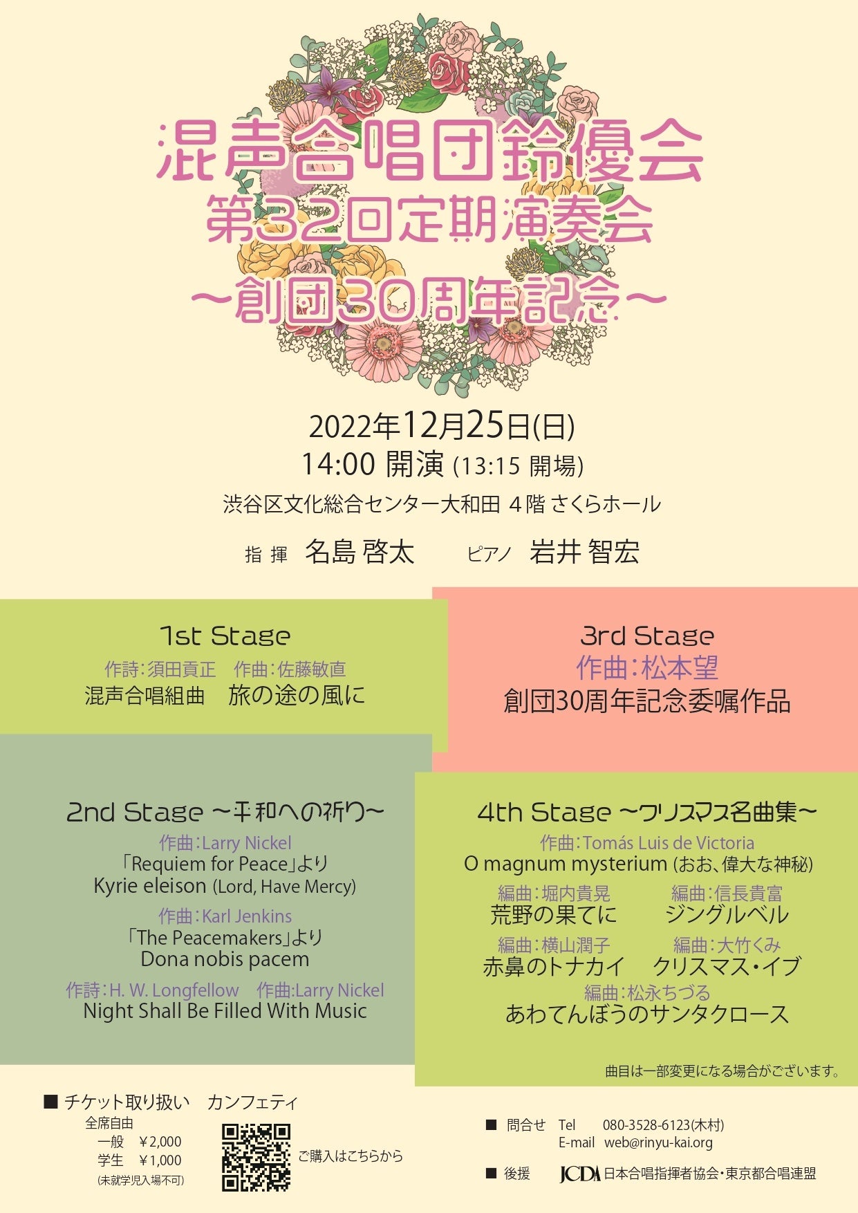 混声合唱団鈴優会「第32回定期演奏会 ~ 創団30周年記念 ~」が2022年12月25日(日) に渋谷区文化総合センター大和田 4階 さくらホール(東京都渋谷区)にて開催されます。チケットはカンフェティ(運営:ロングランプランニング株式会社、東京都新宿区、代表取締役:榑松 ⼤剛)にて10月22日(土) 12:00より発売開始です。