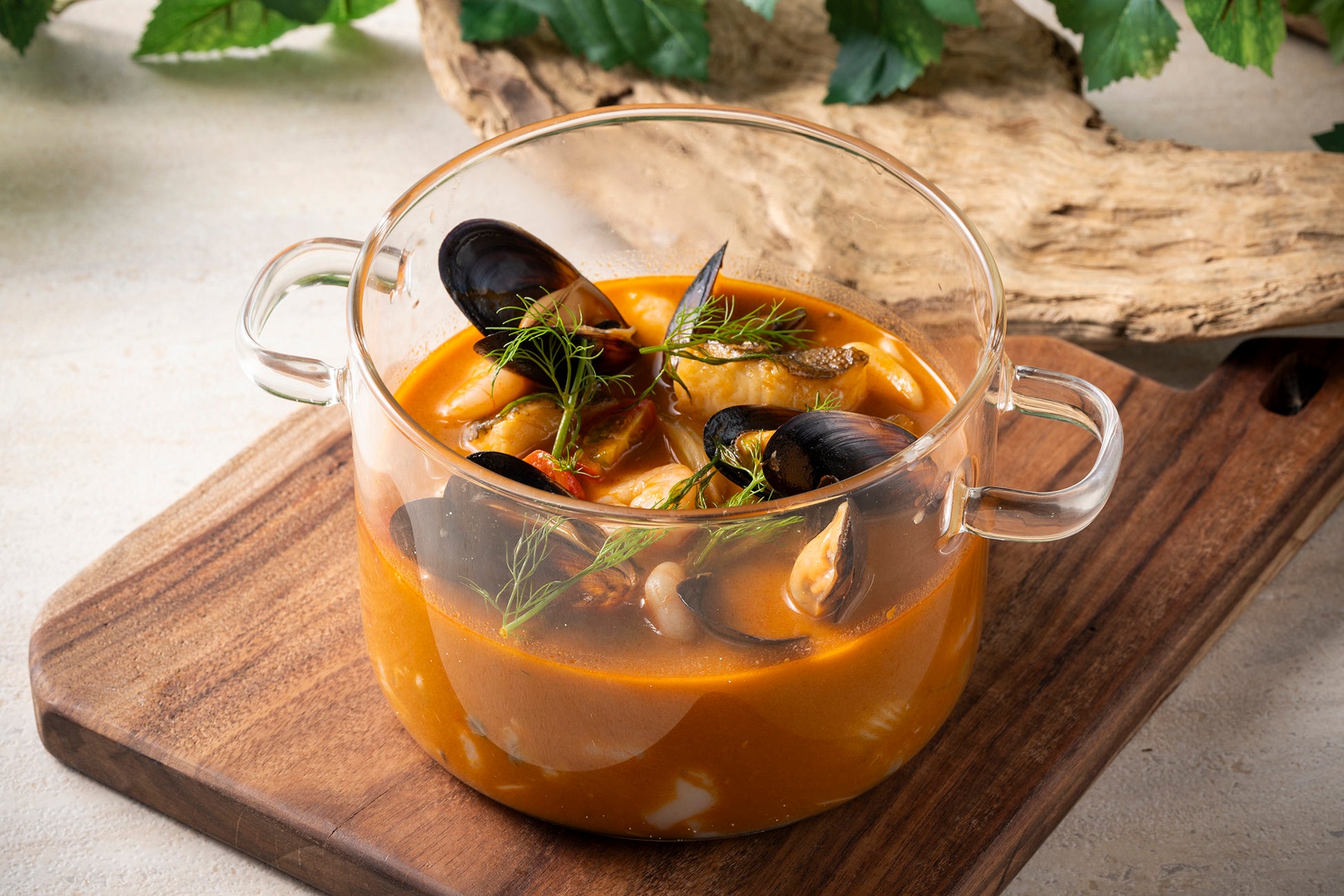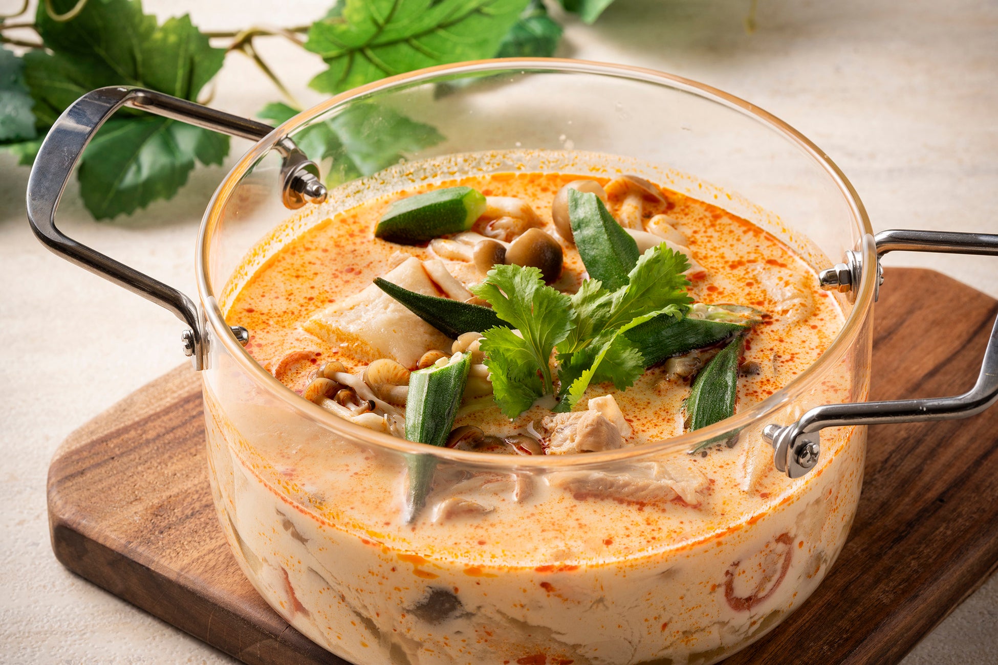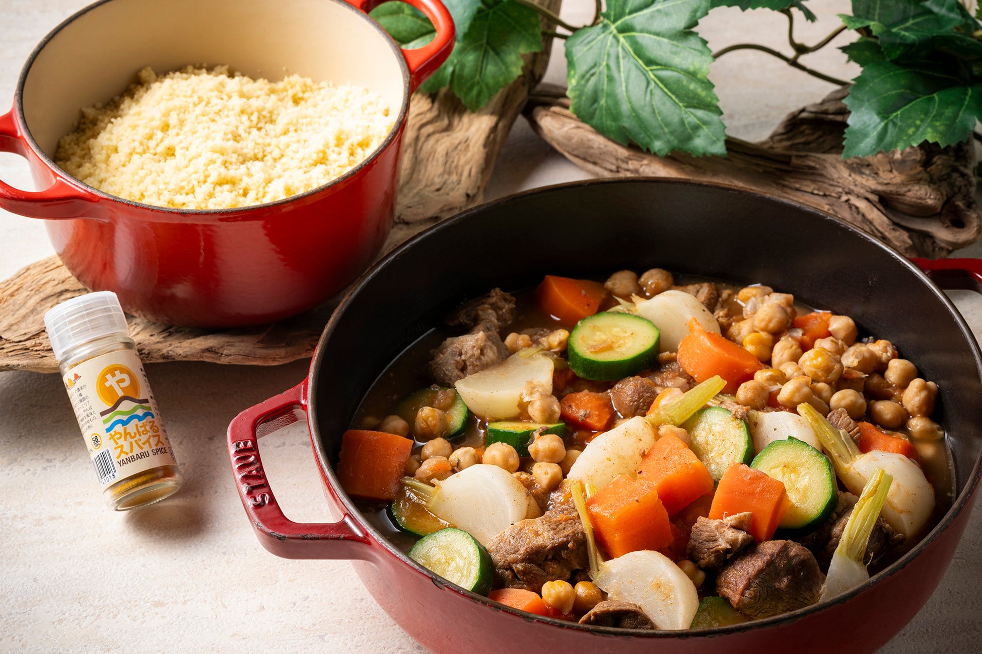 フェアメニューには、冬の時期に心も身体も温まる世界の鍋料理を提供いたします。日本の「しゃぶしゃぶ」をはじめ、白身魚やムール貝などの魚介類をトマトベースで煮込んだ南フランスの「ブイヤベース」や、鶏肉や冬瓜をココナッツミルクで煮込んだタイの鍋料理「トムカーガイ」など、世界各国の鍋料理をご用意いたします。また、ラム肉や野菜の出汁の奥深い風味が特徴で北アフリカでよく食べられる「クスクスダニョー」には、スパイスミックス「やんばるスパイス」を使用、原料の58%がウコンや島唐辛子、島ショウガなどの県産素材でできており、やんばるのスパイスの香りもお楽しみいただけます。世界の味を楽しみながら、身体を芯から温め、心もリラックスさせてくれる鍋料理をご堪能ください。