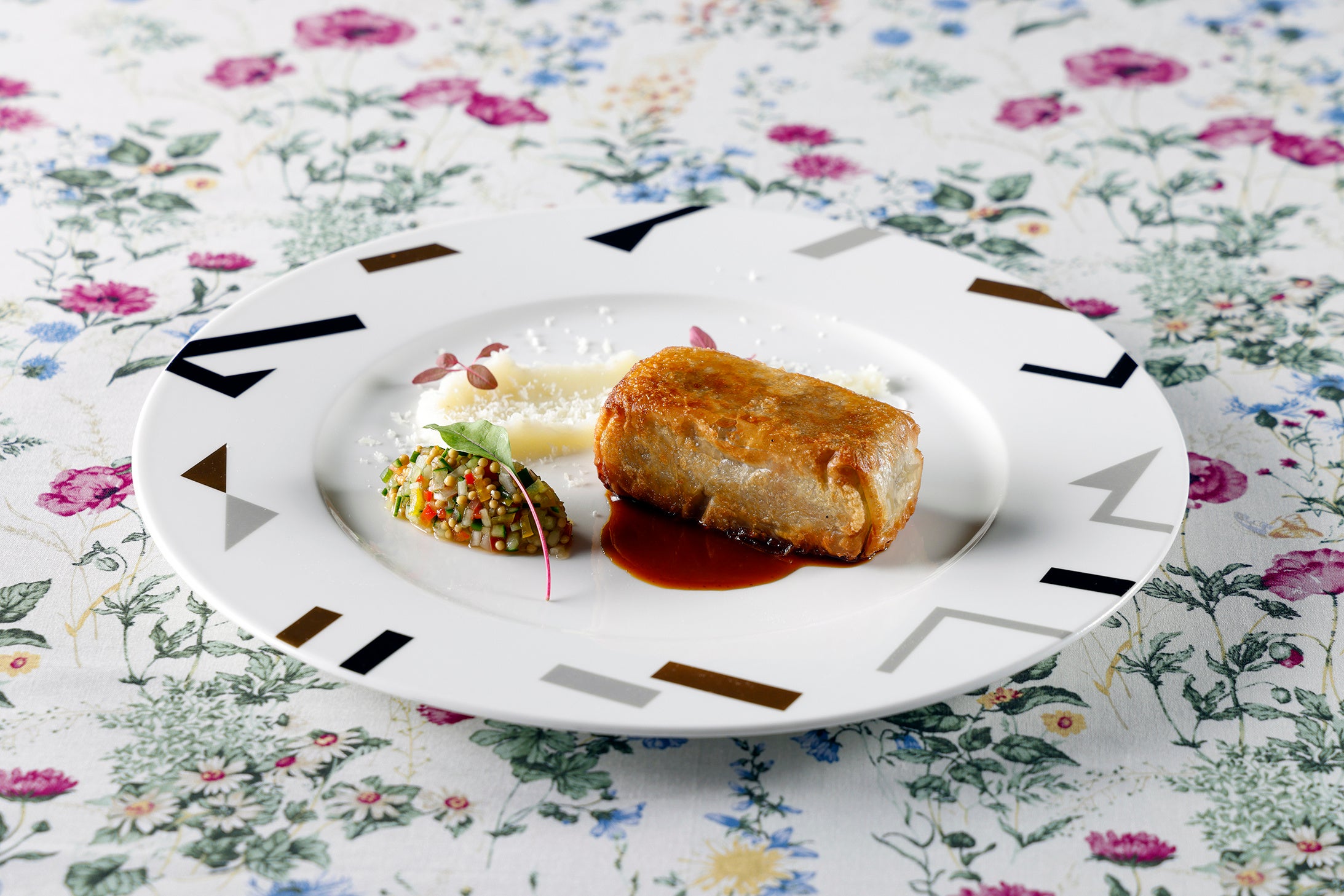 華やかな盛り付けに目を奪われる前菜はクロード・モネ《睡蓮》の世界をイメージ。チャイルド・ハッサム《コロンバス大通り、雨の日》でセピア色で描かれた世界をカボチャと茸のトーンで表現したスープ、そして、メインもハッサムの作品《シルフズ・ロック、アップルドア島》よりインスピレーションを得て、細部までこだわりました。デザートには、ソースにウスターソースをアクセントとして使用。