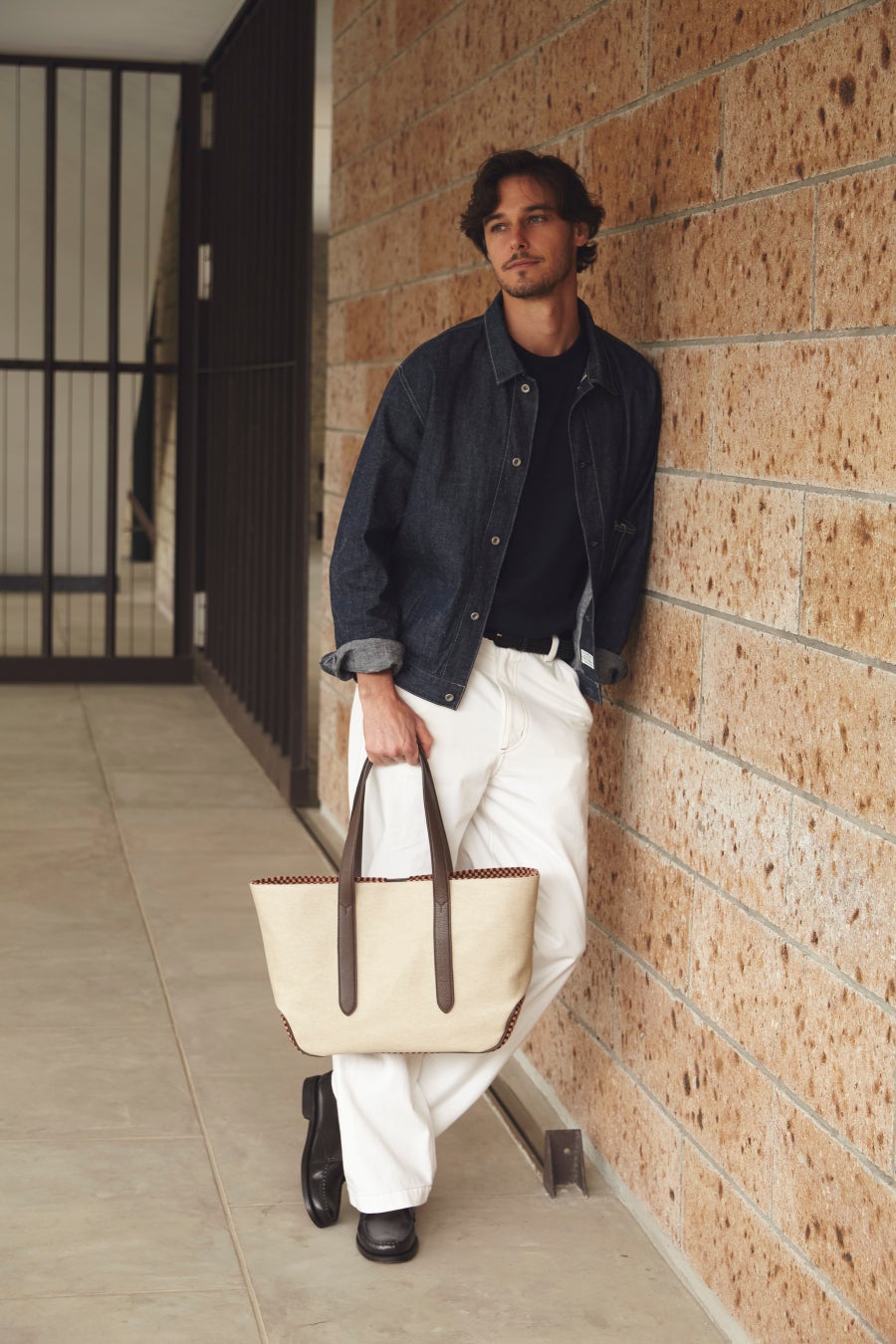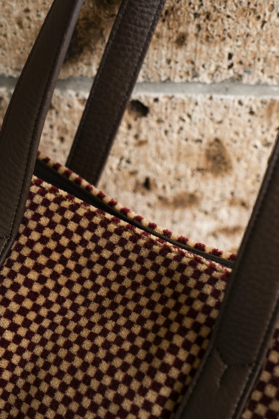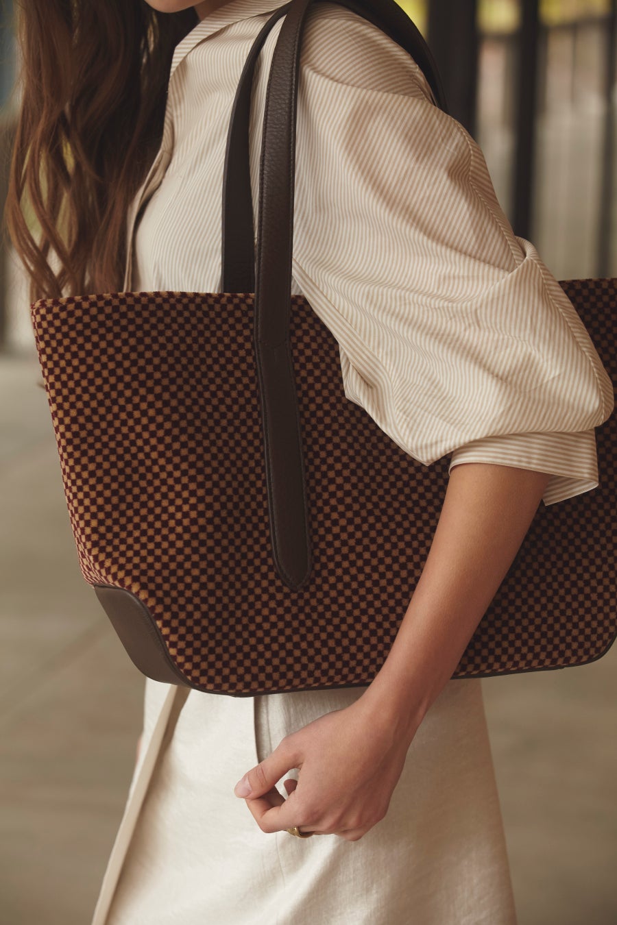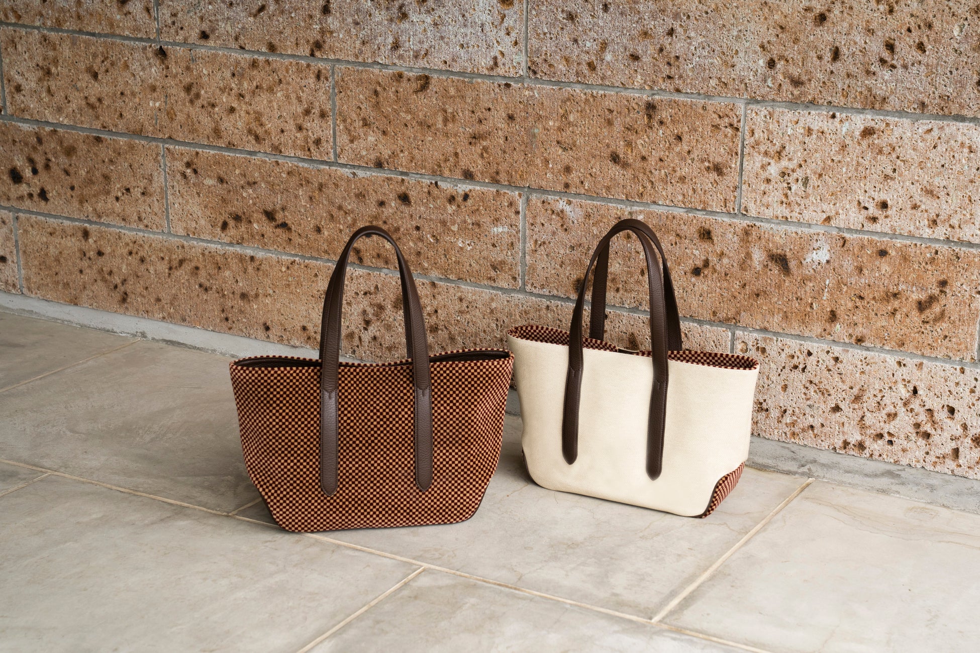 ・100系のシックで柔らかい雰囲気の色柄とBROWNレザーのコンビネーションが秀逸。