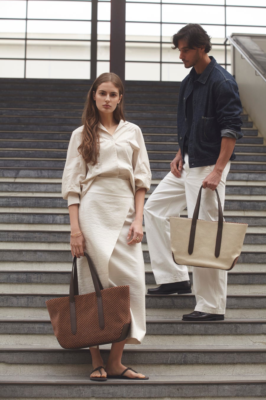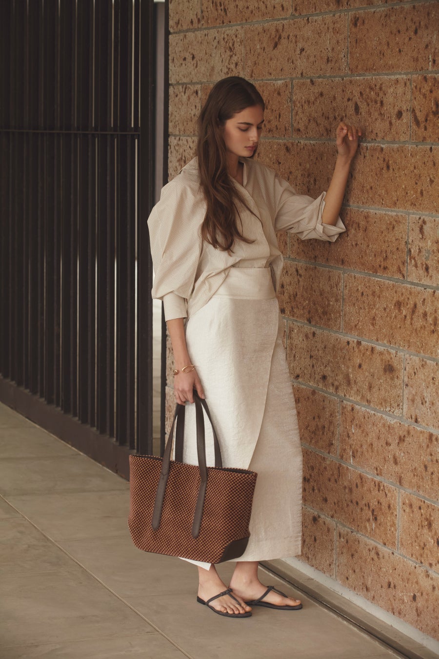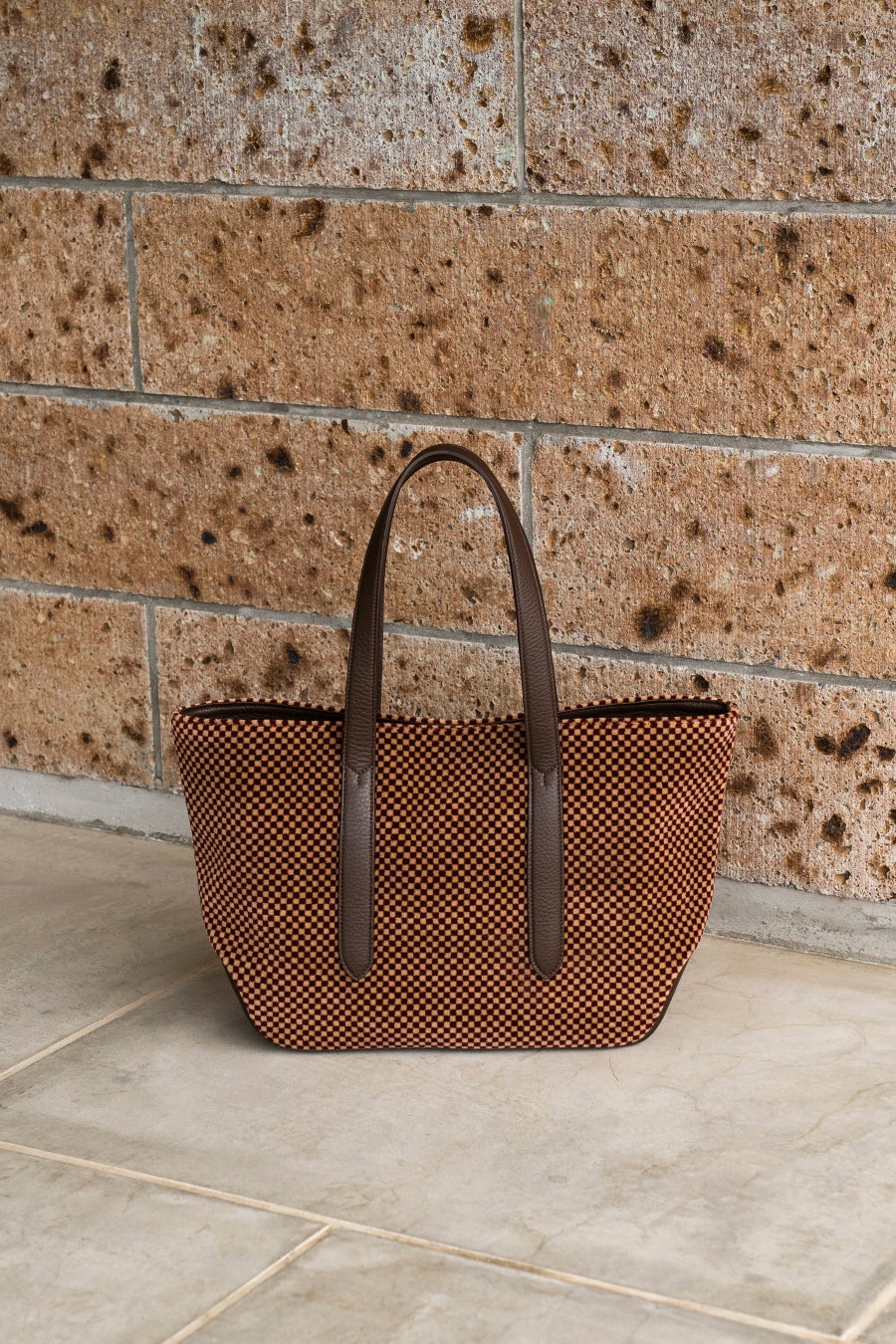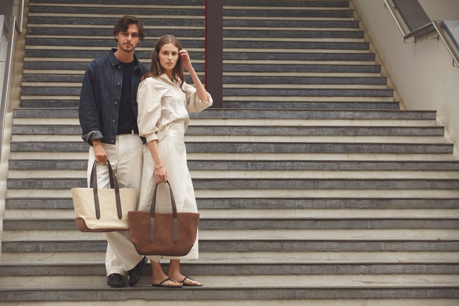 ・100系のシックで柔らかい雰囲気の色柄とBROWNレザーのコンビネーションが秀逸。